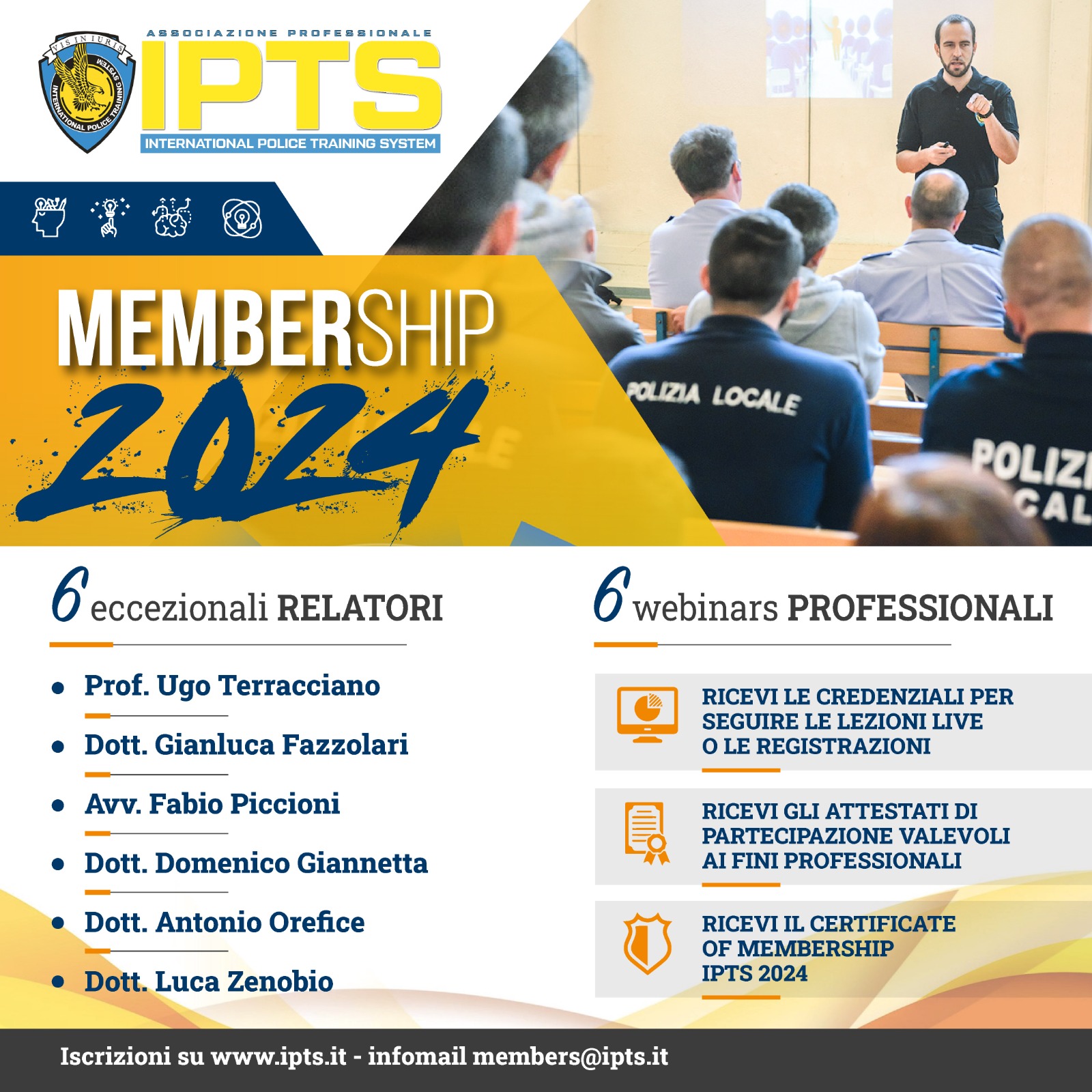Per i Members IPTS 2024 in omaggio 6 Webinars professionali online con i nostri esperti che risponderanno alle tue domande, riceverai le credenziali per rivedere le videolezioni e otterrai l’attestato valido ai fini professionali: