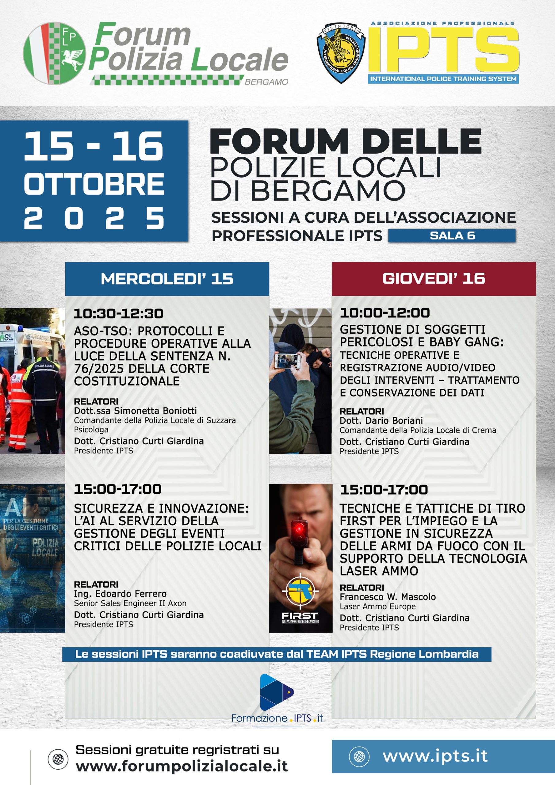 In occasione del Forum Polizia Locale di Bergamo 2025, l’IPTS sarà protagonista con una serie di sessioni formative gratuite dedicate agli operatori della sicurezza urbana e delle polizie locali.