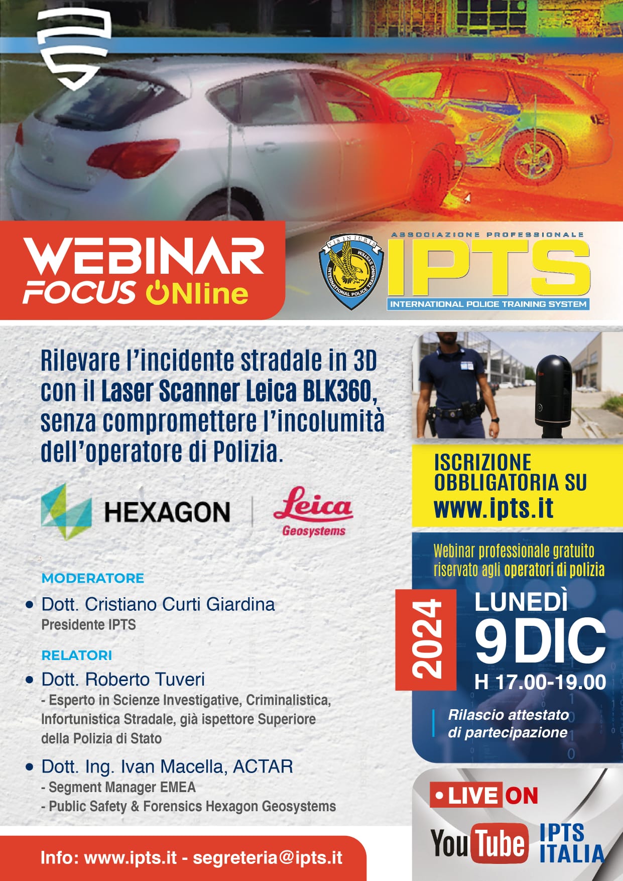 Webinar Focus ONline – Rilevare l’incidente stradale in 3D con il Laser Scanner Leica BLK360 senza compromettere l’incolumità dell’Operatore di Polizia